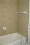 Old tile, window and sink New tile, window and recessed sink Old view 2 New recessed sink Tub/shower area with old tile removed New shower tile and fixtures